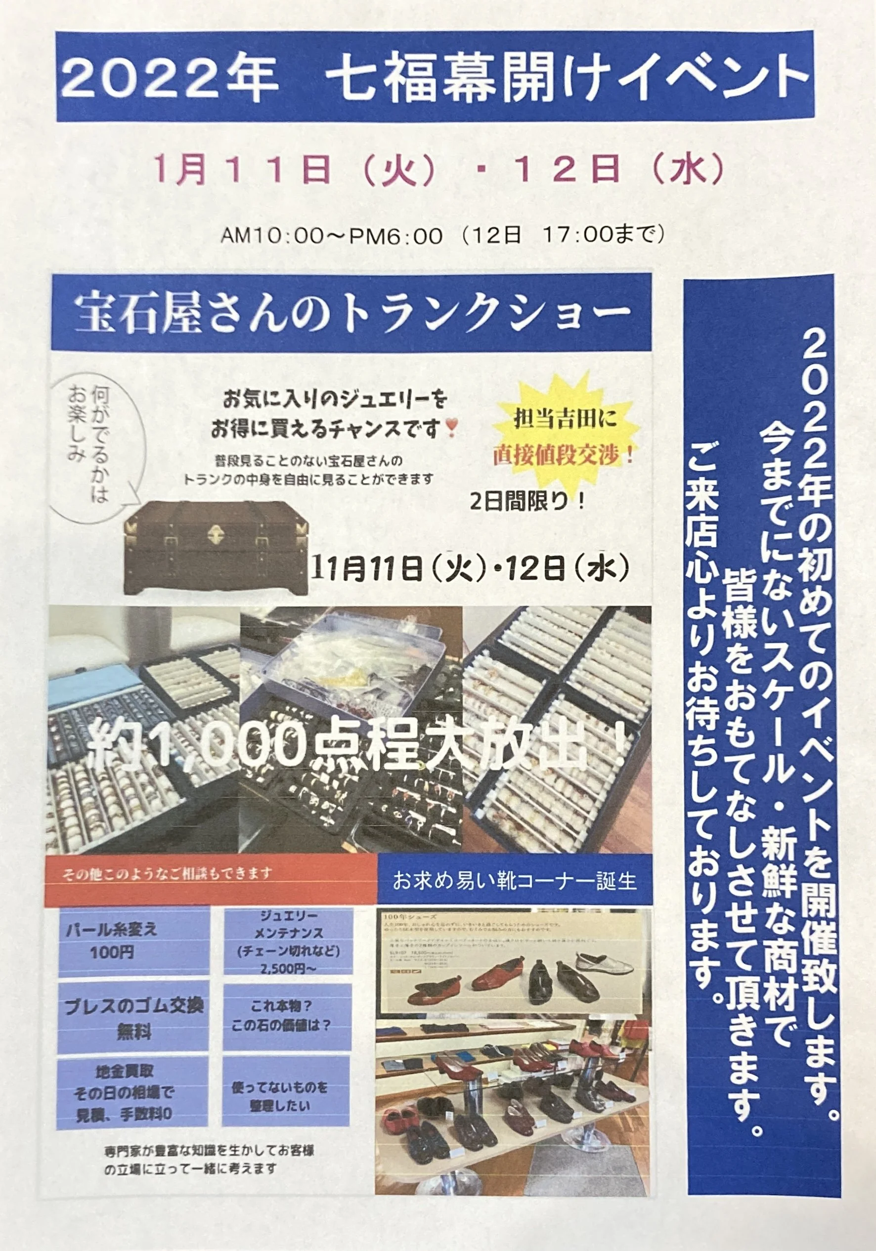 2022年 七福幕開けイベント Tuesday, January 11, 2022 10:00 AM Wednesday, January 12, 2022 5:00 PM Google Calendar ICS