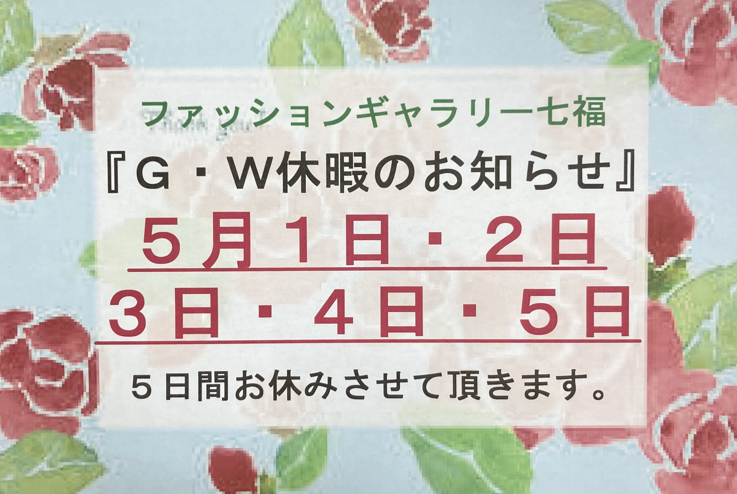 ご不明な点などございましたら、ファッションギャラリー七福まで、
